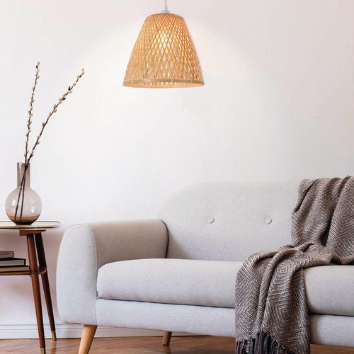 | Intitulé du produit | Suspension conique en bambou naturel Corep, Puissance: 100 W, Coloris: Blanc, Longueur: 30 cm, Largeur: 30 cm |