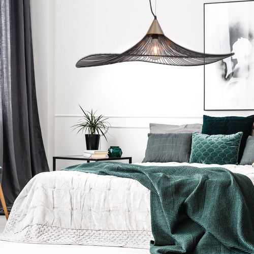 | Intitulé du produit | Suspension conique en métal filaire noir/laiton Corep, Puissance: 60 W, Coloris: Noir/jaune, Longueur: 110 cm |