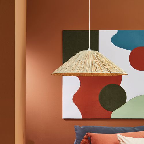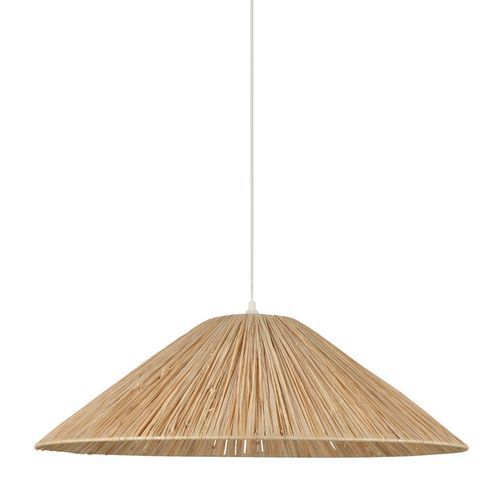| Intitulé du produit | Suspension forme conique en métal filaire et raphia naturel Corep, Puissance: 100 W, Coloris: Blanc |