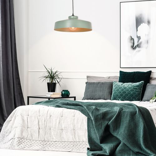 Suspension forme industrielle en métal peint Corep, Puissance: 60 W, Coloris: Vert, Longueur: 41 cm