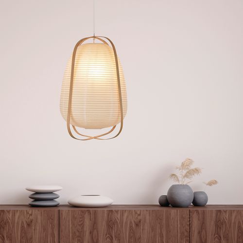 | Intitulé du produit | Suspension forme lanterne en papier japonais et bambou blanc Corep, Puissance: 40 W, Coloris: Blanc |