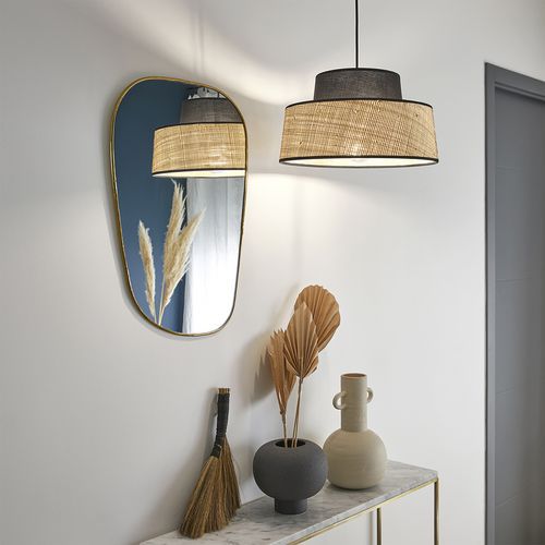 | Intitulé du produit | Suspension Mallorca 2 coniques en coton en raphia Ø38 cm Corep, Puissance: 100 W, Coloris: Noir |