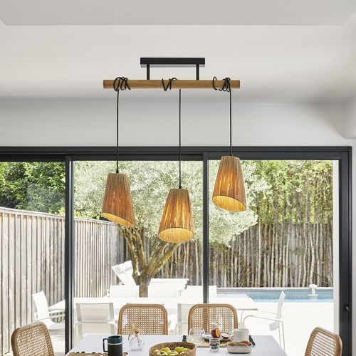 | Intitulé du produit | Suspension métal et raphia naturel Corep PLAYA 3L L55 cm, Puissance: 40 W, Coloris: Beige, Longueur: 14 cm |