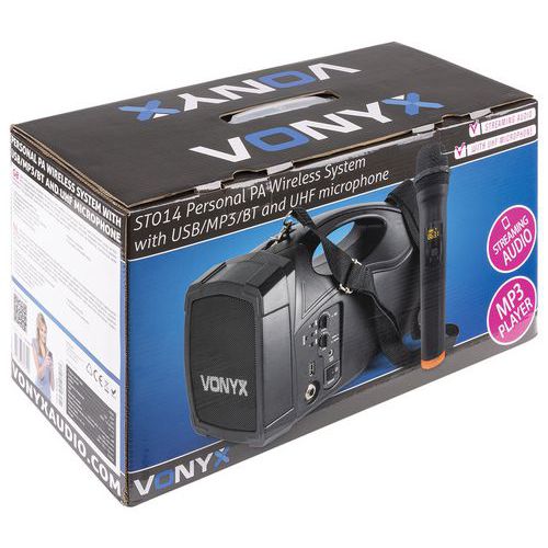 Système amplifié portable ST014 UHF, Puissance maxi: 100 W, Sirène: non, Portée: 10 m, Puissance: 30 W