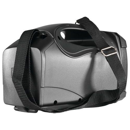 Il peut être posé sur une surface plane, porté en bandoulière et à la main grâce à son faible poids.