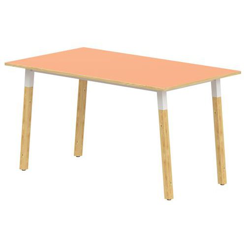 Table 4 pieds inclinés métal/bois 80 x 80 cm stratifié ABS Table 4 pieds inclinés métal/bois 80 x 80 cm stratifié ABS