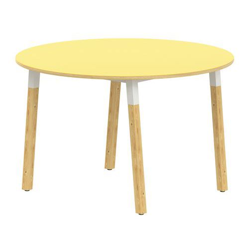 Table 4 pieds inclinés métal/bois ronde Ø 120 cm stratifié ABS