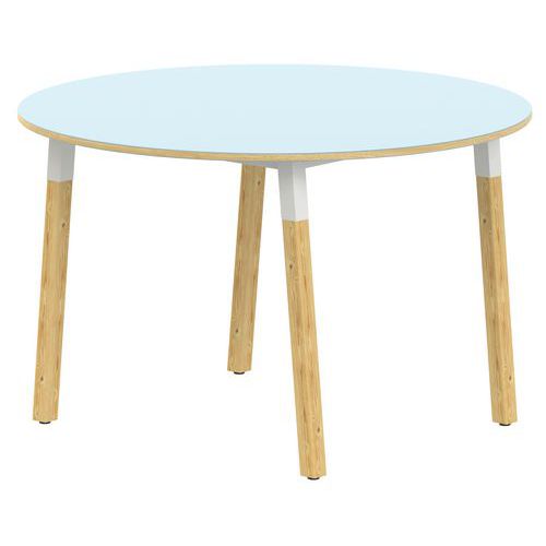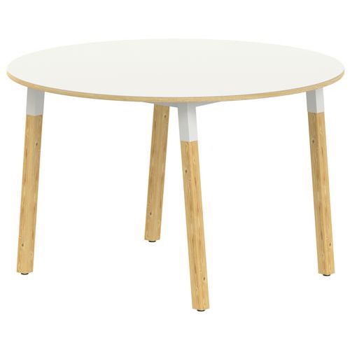 Table 4 pieds inclinés métal/bois ronde Ø 120 cm stratifié ABS