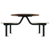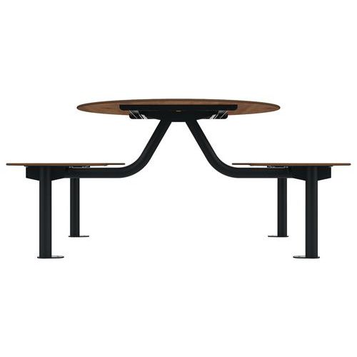 Table bancs MOKA monobloc ronde trou parasol bois/métal BUTON DESIGN, Matériau: Stratifié compact (HPL)
