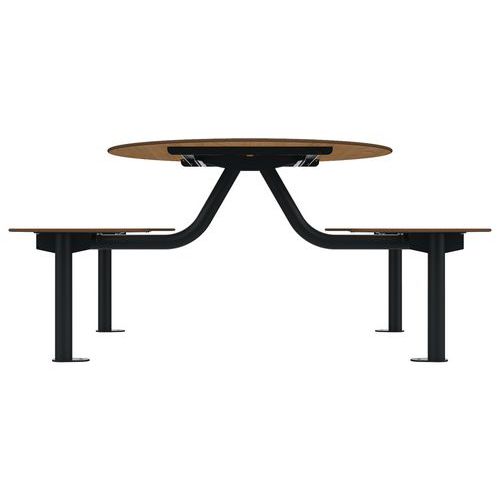 Table bancs MOKA monobloc ronde trou parasol bois/métal BUTON DESIGN, Matériau: Stratifié compact (HPL)