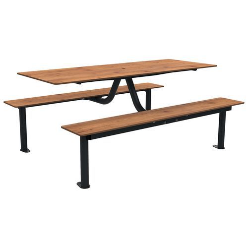 Table bancs MOKA PMR trou parasol bois/métal BUTON DESIGN