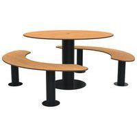 Table bancs MOKA ronde bois/métal, Matériau: Stratifié compact (HPL), Type de fixation: À visser