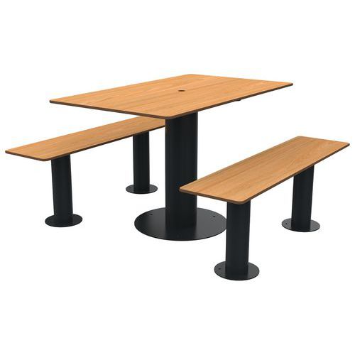 Table bancs MOKA trou parasol bois/métal, Matériau: Stratifié compact (HPL), Type de fixation: À visser Table bancs MOKA trou parasol bois/métal, Matériau: Stratifié compact (HPL), Type de fixation: À visser