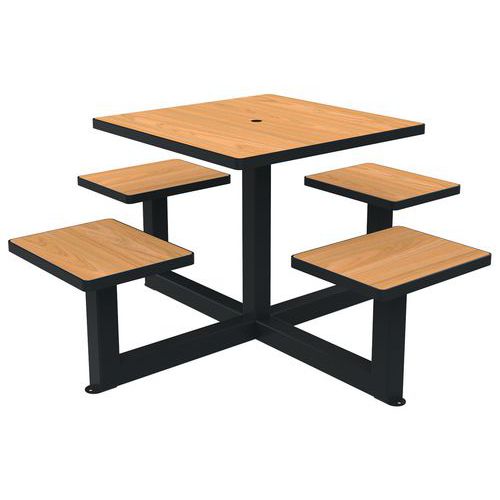 Table bancs ORPIN carrée trou parasol bois/métal, Matériau: Stratifié compact (HPL)