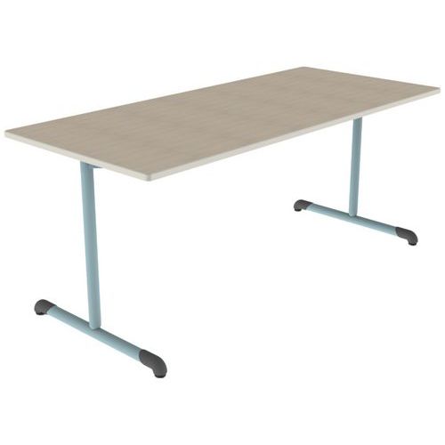 Table Bandana avec plateau stratifié chant polyuréthane. Piètement acier avec semelle droite et montants en tube acier, cadre soudé sous plateau en tube acier. Vérins de réglage.