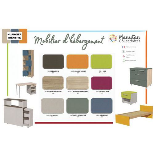 Panneau de particules 19 mm avec chants ABS. 4 pieds 40 x 40 mm. Fabriqué en France. Existe en version mobile sur roulettes. Livrée montée.