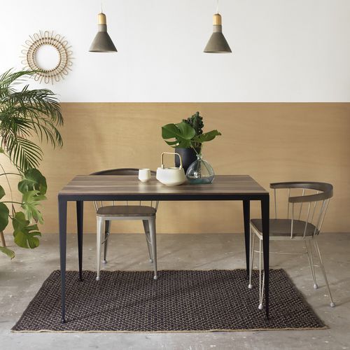 Table Bolonia rectangulaire strat. compact piètement acier