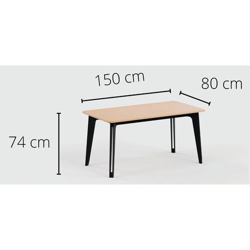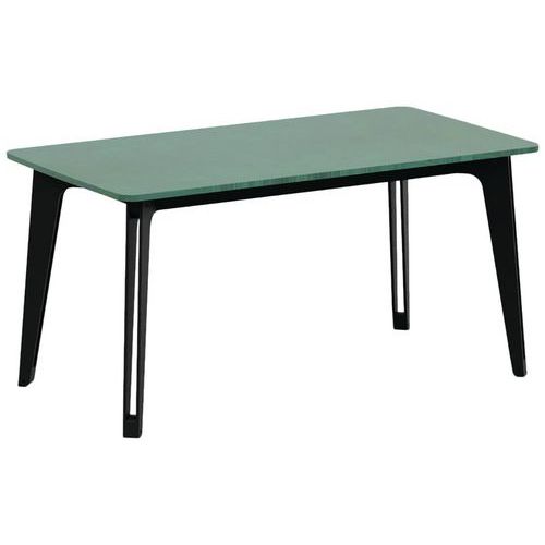 Table Brotteaux : du mobilier upcyclé, responsable et tendance. Piètement laqué noir en stratifié compact de réemploi provenant de cloisons de vestiaires démontés. Plateau en bois aggloméré issu du réemploi d'anciens bureaux. Finition des plateaux en tissu stratifié, provenant des collectes de déchets textiles.