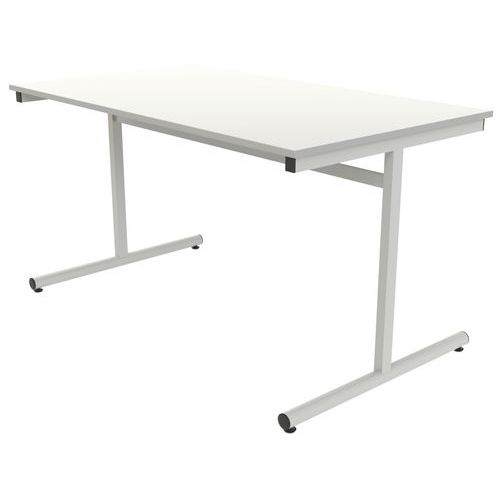 Table rectangulaire T1 à T6. Piètement à dégagement latéral soudé Structure : traverses de renforts soudées 40 x 30 x 1,5 mm sous plateau fixation par vis à bois. Tube acier rond Ø 45 x 1,5 mm, montant en tube de 40 x 30 x 1,5 mm. Soudures renforcées avec apport de métal. Embouts polyéthylène, fixations par ailettes. Vérins de réglages avec patins anti-tâches et insonores. Plateau : stratifié, contrebalancé. Chants ABS 2 mm. Panneau de particules d’une densité de 690 kg/m3 classé E1. Classement non feu M3. Conforme aux normes NFD 60-050, NFD 62-050 et NFD 62-070. Livré démonté Garantie client : 10 ans