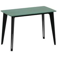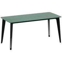 Table Brotteaux : du mobilier upcyclé, responsable et tendance.  Piètement laqué noir en stratifié compact de réemploi provenant de cloisons de vestiaires démontés.  Plateau en bois aggloméré issu du réemploi d'anciens bureaux.  Finition des plateaux en tissu stratifié, provenant des collectes de déchets textiles.