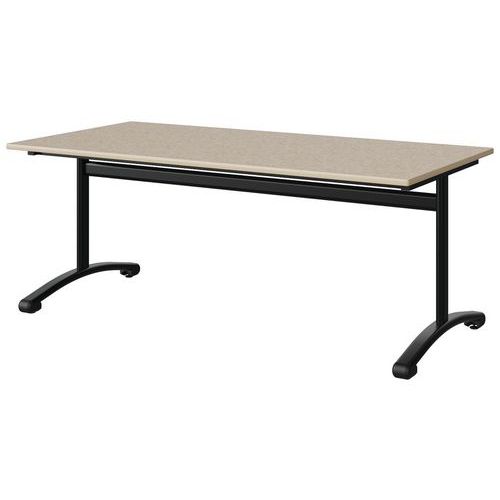 Table Malibu à dégagement latéral, plateau aggloméré stratifié, épaisseur 21 mm, isoson, avec revêtement souple de 3 mm sur le dessus, permettant de réduire le bruit jusqu'à 15db.