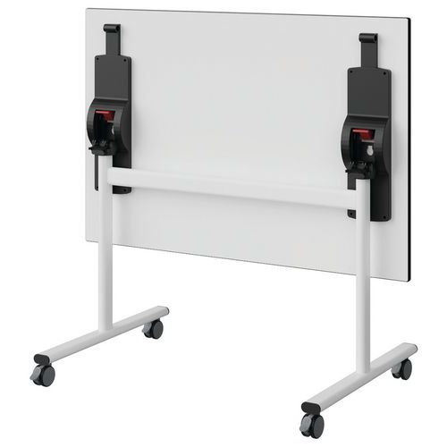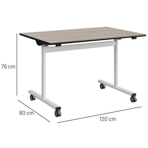 Table Malibu rabattable, dégagement latéral, plateau aggloméré stratifié, épaisseur 21 mm, antibruit, renforcé par du liège (3 mm) permettant la réduction du bruit de 9db.