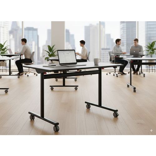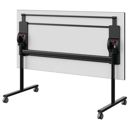 Table Malibu rabattable à dégagement latéral, plateau aggloméré stratifié, épaisseur 21 mm, isoson, avec revêtement souple de 3 mm sur le dessus, permettant de réduire le bruit jusqu'à 15db.