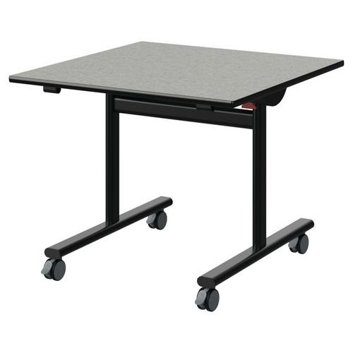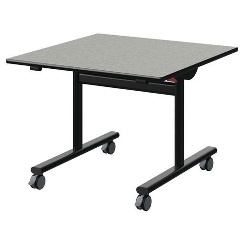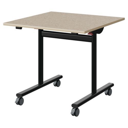 Table Malibu rabattable à dégagement latéral, plateau aggloméré stratifié, épaisseur 21 mm, isoson, avec revêtement souple de 3 mm sur le dessus, permettant de réduire le bruit jusqu'à 15db.