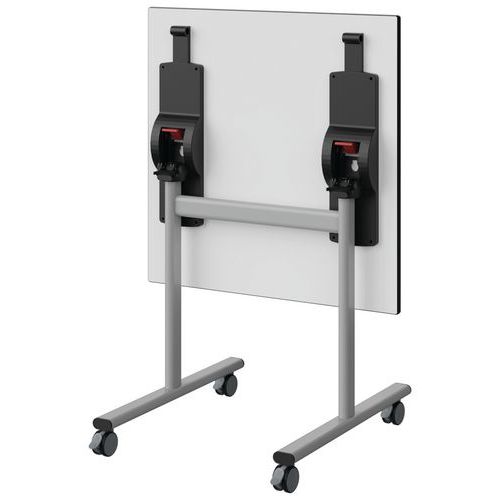 Table Malibu rabattable à dégagement latéral avec plateau aggloméré stratifié, épaisseur 21 mm, chant surmoulé. Contrebalancement stratifié sous plateau blanc. Piètement tube acier, soudure avec apport de matière. Système basculant avec blocage en plastique. Roulettes pivotantes avec frein. Embouts avec verins de réglage en polyéthylène noir non tachant, non marquant. Poudre époxy. Fabriqué en Nouvelle Aquitaine. Livré monté. Autres coloris disponibles sur demande.
