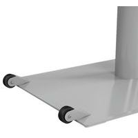 Contact au sol par caoutchouc adhésifs et 2 roulettes.