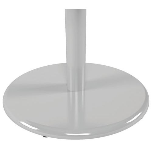 Table Menorca avec plateau stratifié contrebalancement blanc chant ABS. Piètement époxy : tube acier, embase, platine en fonte moulée sous le plateau. Contact au sol sur 4 vérins de réglages.