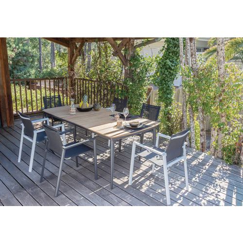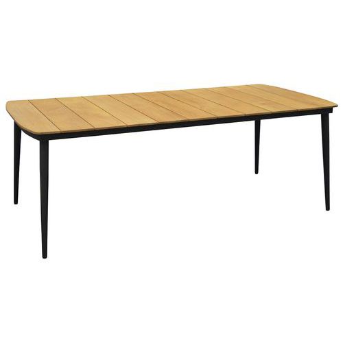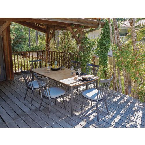 | Intitulé du produit | Table Neuvic alu/teck 208/74/100 cm, Forme: Rectangle, Plateau matériau: Teck, Plateau coloris: Marron clair |