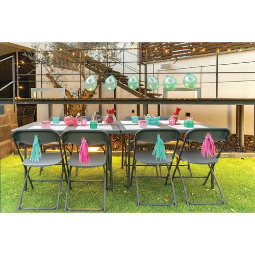 - Table pliante XL avec plateau 100% polyéthylène haute densité.