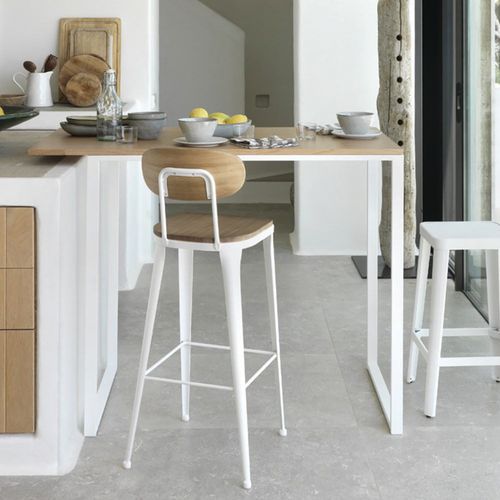 - Tabouret Austin avec assise et dossier en pin massif.