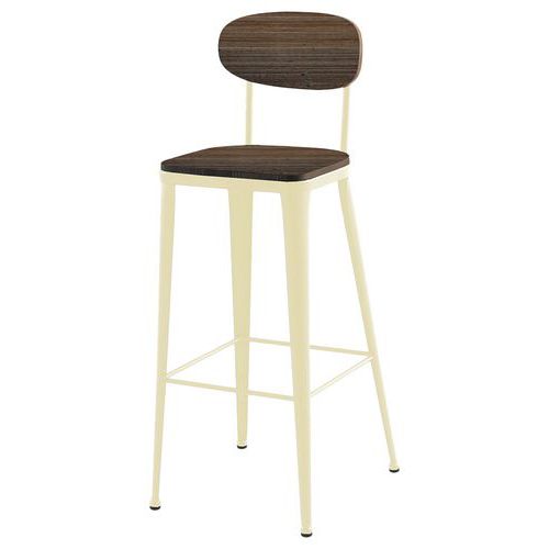 Tabouret Austin assise et dossier pin - piètement acier
