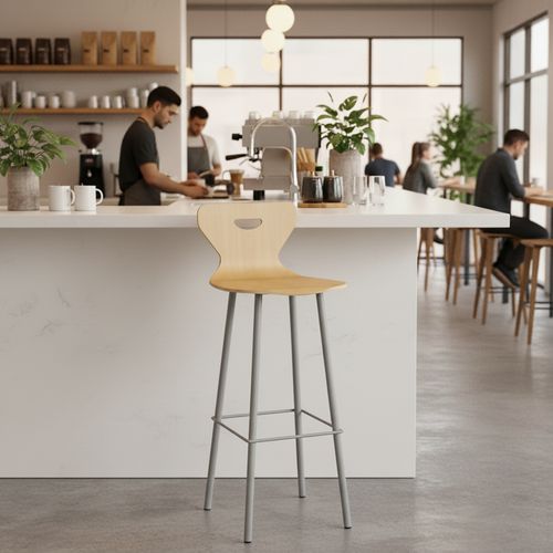 Tabouret Malibu avec coque hêtre multiplis vernie ép. 10 mm, vissée et collée sur la structure. Poignée de préhension. Piètement tube acier Ø25 mm, épaisseur 1,5 mm. Support de garniture tôle acier 2 mm. Repose pieds acier 10 mm. Soudure avec apport de matière. Embouts en polyéthylène noir non tachant, non marquant. Poudre époxy. Fabriqué en Nouvelle Aquitaine. Livré monté. Autres coloris disponibles sur demande.