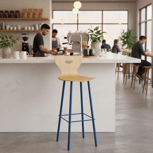 Tabouret Malibu avec coque hêtre multiplis vernie ép. 10 mm, vissée et collée sur la structure. Poignée de préhension. Piètement tube acier Ø25 mm, épaisseur 1,5 mm. Support de garniture tôle acier 2 mm. Repose pieds acier 10 mm. Soudure avec apport de matière. Embouts en polyéthylène noir non tachant, non marquant. Poudre époxy. Fabriqué en Nouvelle Aquitaine. Livré monté. Autres coloris disponibles sur demande.