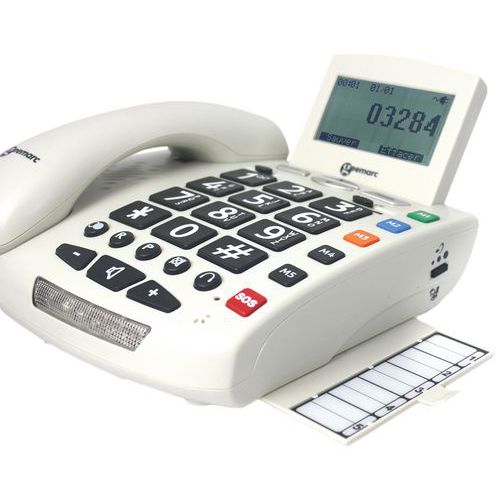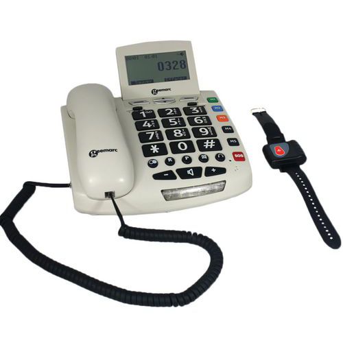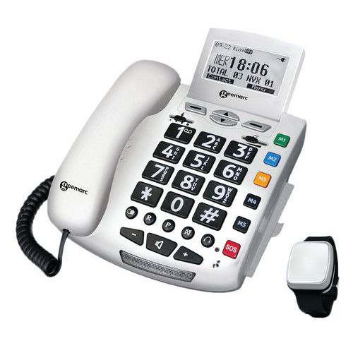 | Intitulé du produit | Téléphone filaire avec bracelet détection de chute Geemarc, Sans fil: non, Compatible appareil auditif: oui |