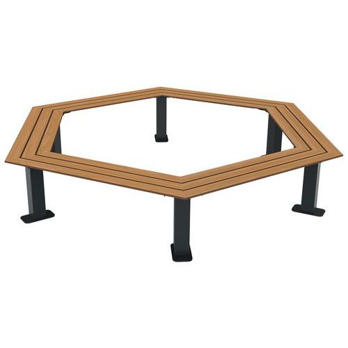 - Assise compact HPL finition effet lames, structure en acier traité anticorrosion et poudré anti-UV.