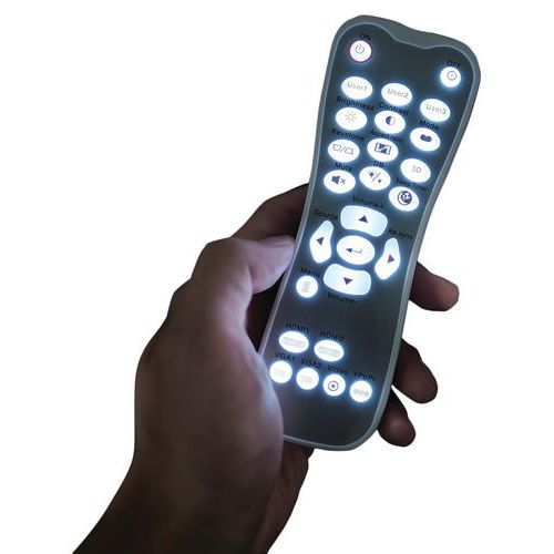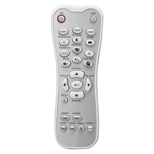 Livré avec : Cordon d'alimentation AC, télécommande, 2 piles AAA, manuel d'utilisation basique
