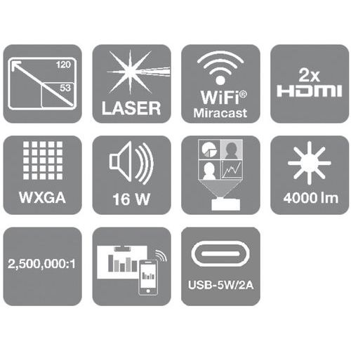 | Intitulé du produit | Vidéoprojecteur laser ST EB-L210SW 4000L WXGA, Flux lumineux: 4000 lm, Technologie vidéoprojecteur: Tri-LCD |