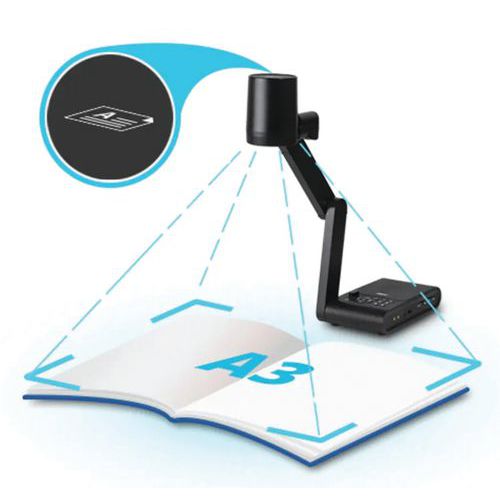 Visualiseur incluant une caméra 13 mégapixels, une imagerie 4K et une capacité de zoom totale transcendante de 322 X. Prise en charge de Circle to Search avec Google Lens™ et du générateur d'images IA dans AVerTouch. Permet aux enseignants de présenter tout type de matériel d'une manière extraordinairement vivante. Boutons de fonction intuitive, un bras extensible et le logiciel AVerTouch Capteur d'image : CMOS 1/3.06 po Lignes TV : 1,400 13 mégapixels Total Zoom : 322X (optique 14x + numérique 23x) Résolution sortie : 4K, Full HD 1080p 60Hz, HD 720p 60Hz Cadence d'images : 60fps (max) Mise au point : Auto / Manuel Champ de la caméra : A3 (420 x 315 mm max.) Rotation de l'image : Électronique : 0°, 180° , Mécanique : 0°, 90°, 180° (bloc caméra) Stockage interne : 200 images en XGA (1024 x 768) Stockage externe : Micro SD et clé USB (FAT32 / 32 Go) Effets de l'image : Couleur, N&B, négatif Balance des blancs / exposition : Auto / Manuel Format d'affichage vidéo : Normal, vidéo, haute qualité, microscope, macro, infini Modes de capture : Unique, continu Profils utilisateurs : jusqu'à 3 Minuterie Contrôle filtre scintillement ePTZ Lampe LED intégrée Ports : HDMI : I/O : x2 VGA : I/O : x2 Ports USB 2.0 : Type A x 1 (clé USB) , Type mini-B x 1 (PC) Audio Mini jack 3,5 mm HDMI Port RS-232 : Connecteur Mini-DIN Dimensions (l/p/h) En fonctionnement : 159,0 x 481,3 x 469,9 mm