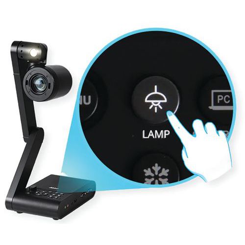 Visualiseur incluant une caméra 13 mégapixels, une imagerie 4K et une capacité de zoom totale transcendante de 322 X. Prise en charge de Circle to Search avec Google Lens™ et du générateur d'images IA dans AVerTouch. Permet aux enseignants de présenter tout type de matériel d'une manière extraordinairement vivante. Boutons de fonction intuitive, un bras extensible et le logiciel AVerTouch Capteur d'image : CMOS 1/3.06 po Lignes TV : 1,400 13 mégapixels Total Zoom : 322X (optique 14x + numérique 23x) Résolution sortie : 4K, Full HD 1080p 60Hz, HD 720p 60Hz Cadence d'images : 60fps (max) Mise au point : Auto / Manuel Champ de la caméra : A3 (420 x 315 mm max.) Rotation de l'image : Électronique : 0°, 180° , Mécanique : 0°, 90°, 180° (bloc caméra) Stockage interne : 200 images en XGA (1024 x 768) Stockage externe : Micro SD et clé USB (FAT32 / 32 Go) Effets de l'image : Couleur, N&B, négatif Balance des blancs / exposition : Auto / Manuel Format d'affichage vidéo : Normal, vidéo, haute qualité, microscope, macro, infini Modes de capture : Unique, continu Profils utilisateurs : jusqu'à 3 Minuterie Contrôle filtre scintillement ePTZ Lampe LED intégrée Ports : HDMI : I/O : x2 VGA : I/O : x2 Ports USB 2.0 : Type A x 1 (clé USB) , Type mini-B x 1 (PC) Audio Mini jack 3,5 mm HDMI Port RS-232 : Connecteur Mini-DIN Dimensions (l/p/h) En fonctionnement : 159,0 x 481,3 x 469,9 mm Garantie client : 5 ans