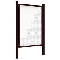 Vitrine 2000 simple face, épaisseur 75 mm. Vitrage plexichocs épaisseur 4 mm. Serrure de sécurité avec 2 clés Joint élastomère d'étanchéité. Coins arrondis. Finition intérieure fond en tôle galvanisée laquée blanc. Finition cadre aluminium peint. Fixation sur 2 poteaux Quatro oblongs de section 80 x 125 mm, en aluminium, livrés avec bouchons en tôle d’acier noir vissés et 4 pièces de liaison pour une fixation rapide et sans perçage. Scellement direct. Aimants offerts