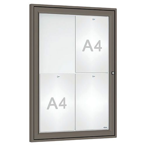 Vitrine Tradition simple battant murale, Capacité (nb de feuilles A4): 4, Fond matériau: Acier