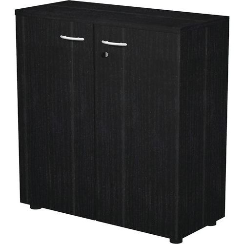 Meuble bas Fast à portes coulissantes. Etagère repositionnable en hauteur. Socle équipé de vérins de réglages. Jeu de portes battantes.