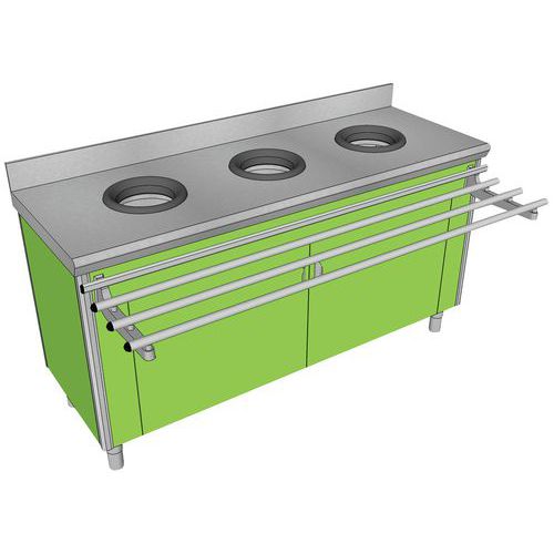 Meuble de pré-tri mural p/adulte, avec 3 trous vide-déchet + porte-sac