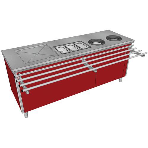 - Dessus en acier inoxydable épaisseur 15/10e de mm.