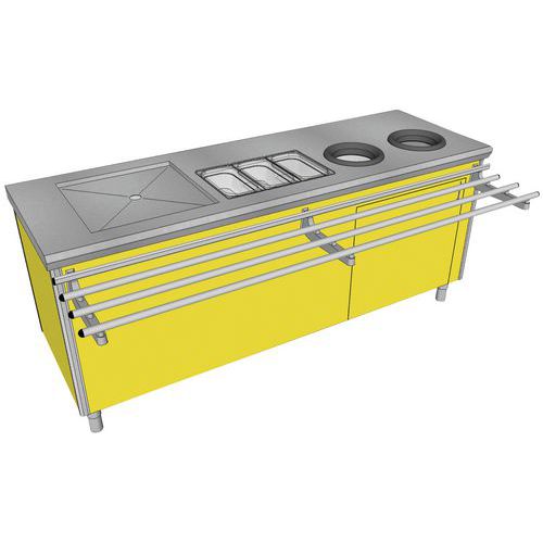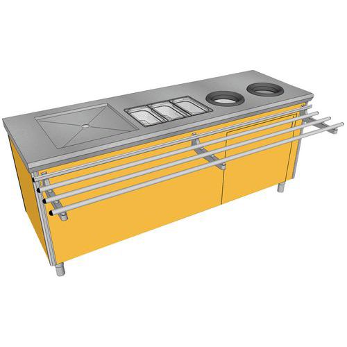 - 3 bacs à couverts GN1/3 polycarbonate profondeur 150 mm (fournis).