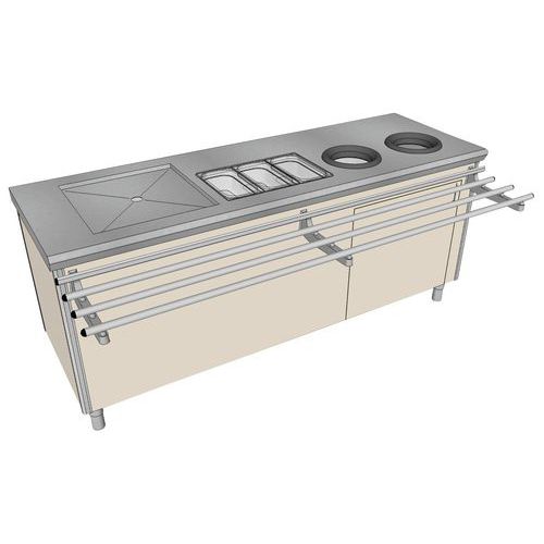 - Dessus en acier inoxydable épaisseur 15/10e de mm.